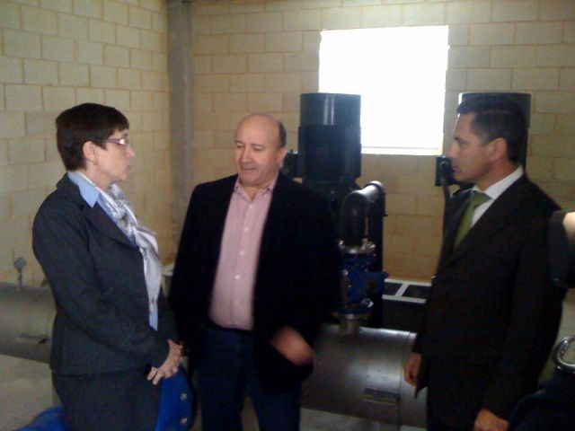 La presidenta de la Confederación Hidrográfica del Segura (CHS), Charo Quesada, y el alcalde de Ceutí, Manuel González, han visitado hoy la conclusión de las obras de conexión de la Estación Depuradora de Aguas Residuales de Ceutí (EDAR) con las balsas de regulación de la Comunidad de Regantes de este municipio, cuyos comuneros dispondrán de recursos hídricos adicionales para sus regadíos, principalmente, cultivos arbóreos.