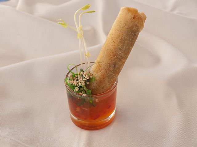 El Albero ofreció un "Crujiente de pollo Teriyaki con salsa de Thay y algas Wakame", pincho de carácter minimalista envuelto en una masa crujiente y acompañado por una salsa agridulce de aromas orientales.