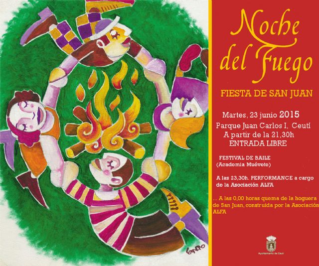 El municipio de Ceutí se prepara para celebrar mañana martes 23 de junio la fiesta de San Juan con la mágica "Noche del Fuego", que tendrá lugar en el Parque Juan Carlos I a partir de las 21'30 horas organizada por el Ayuntamiento local. Con entrada libre los asistentes podrán disfrutar de un festival de baile protagonizado por los miembros de la academia "Muévete", un anticipo de la performance que llevará a cabo la asociación "ALFA" (23'30 horas).